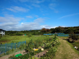 カウヤから海側を見る。真ん中が海。