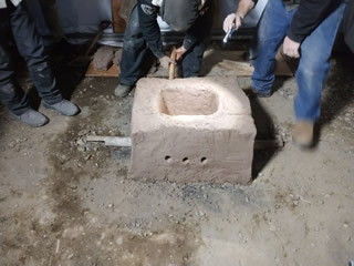 炉の粘土のお豆腐作り。