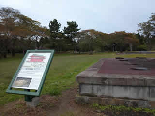 後ろの緑、調査区。