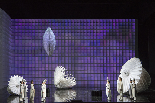【※右の背景画像:撮影/寺司正彦、提供/新国立劇場、福山雅治似のクラウス・フロリアン・フォークト(ローエングリン役)とマヌエラ・ウール(エルザ役)。エルザ姫が背中に付けているのは何?】⇒