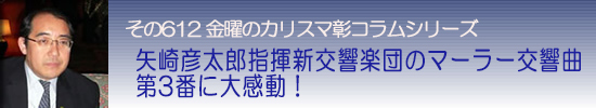 今回はマーラーだが、何の不満もないばかりか説得力のある演奏だった。この曲は「敬虔で純粋な宗教的な感情」「ユーモア」「不幸・災厄に立ち向かう決然とした不断の勇気」などが求められるが、何かそうしたものに矢崎の音楽的特性がフィットしているのではないかという気がする。