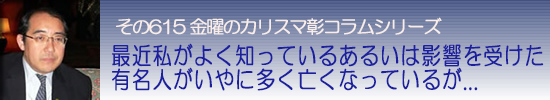 新年になって早くも1カ月経つが、その1カ月の間に私がよく知っているあるいは影響を受けた有名人がいやに多く亡くなっている。