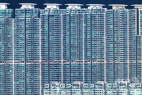 こうした高層の集合住宅が連なる風景は、どこの都市のものでも一幅のアートに見えてきます。
