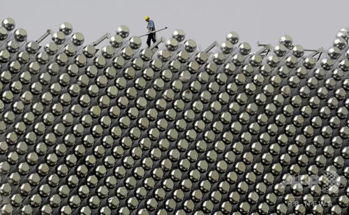 いやもう・・何が起きているのか不思議すぎる光景ですが、実は中国は湖北省の省都武漢にあるホテルの屋上付近で作業をする従業員の姿。うん、アートそのもの。