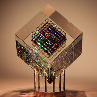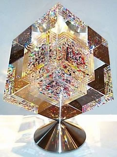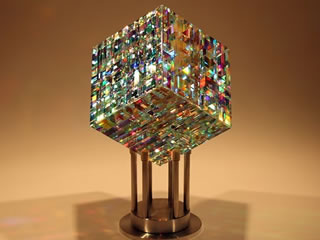 虹を閉じ込めたクリスタル・キューブ、ロマンを感じます。