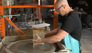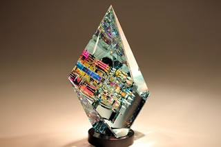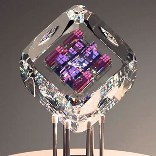 このクリスタル彫刻は「マジック・クロマ・キューブ」と呼ばれ、それをアーティストが制作中の画像がありました。