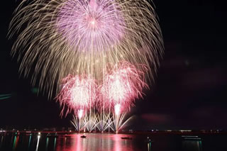 今年はコロナ禍も一段落して、各地で休止していた大会が復活しました。下は、今年の三重・桑名水郷の花火大会の模様。(どこのでも良かったけれど)