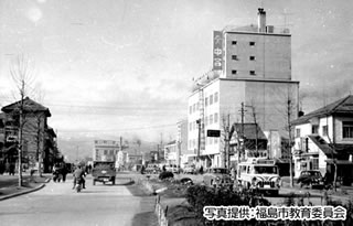 左に見えるのが上町中合デパート、画面の奥が福島駅。この手前には「粉又」や「大勝軒」がありました。(いずれも僕の同級生の実家)