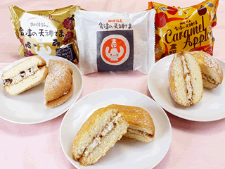 「羊羹フロマージュ」には色々なバリエーションがあり、次の写真は左から栗、かぼちゃ、バナナ、ティラミス、焼きいものブリュレ。