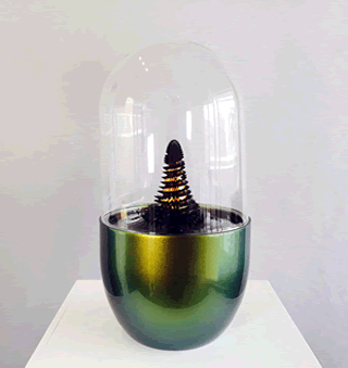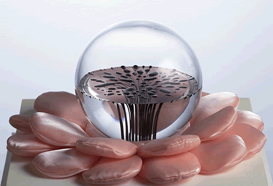これらは磁性流体で現出した形をガラスに閉じ込めたようですが、意外性・偶然性を超えて「美」まで到達しているように思います。
