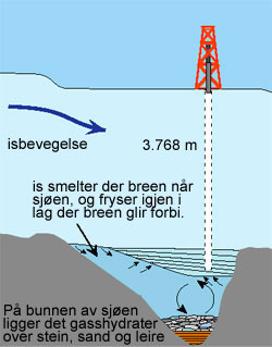 そこで、(淡水とみられる)湖水の汚染を防ぐためにコアの掘削は湖水の境界面まで120メートルの地点で停止されました。
