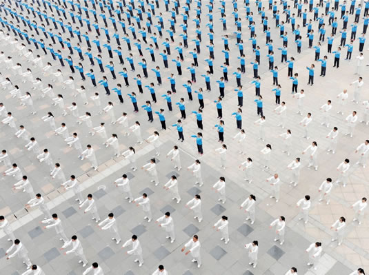 一瞬、北朝鮮かと思いましたが、中国は河南省の沁陽市で太極拳をしている人々を撮った写真。絵的にも美しいですね。