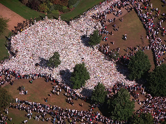 そう・・この年の8月31日に客死したダイアナ妃を弔うために、群衆が花束を持って集まった場面です。惜しい人を亡くしました・・。