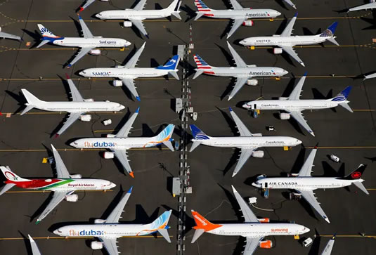 2019年3月10日、157人が死亡したエチオピア航空302便の墜落事故を受け、ボーイング社の同型旅客機が運航停止命令を受け、整備済の機材が納入されないまま保管されている姿です。