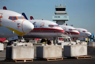 ここはボーイング社の駐機場。何故、こんなに密集しているのか?