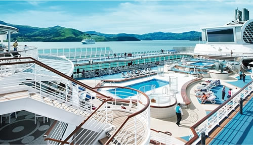 展望風呂やカジノを備えた「プリンセス・クルーズ」のデッキ。