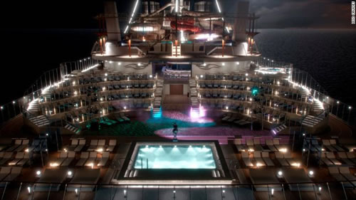 上の俯瞰図では、右上に小さく見える艦尾の「洋上テーマパーク」は実際はこんな・・