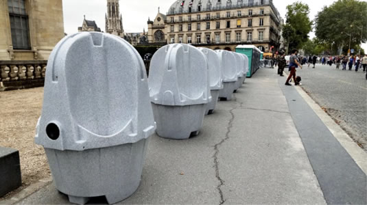 ということで、今回の最後の一枚は、運営当局によって急遽増設されたパリ市内の公衆トイレ(男子小用)の画像。