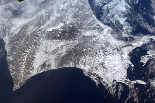 これは2010年2月、宇宙飛行士の野口聡一さんがツイッター(X)に投稿した北海道東南部の写真。 サロマ湖や知床半島も見えます。
