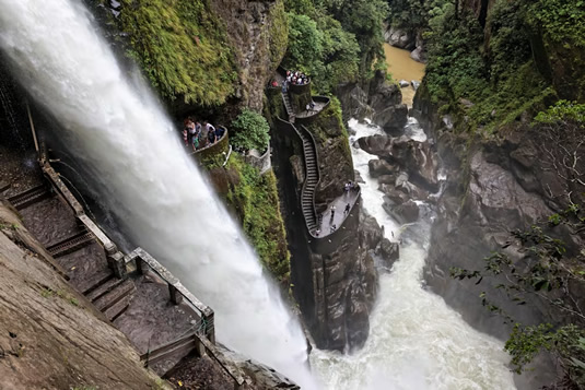 ほかにデンジャラスな所では、エクアドルの“悪魔の大釜” という意味を持つ「パイロン・デル・ディアブロ滝」にある階段。