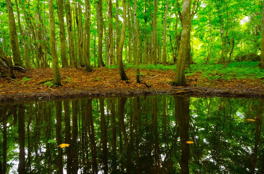白神山地は青森県と秋田県にまたがる広大なブナの原生林。