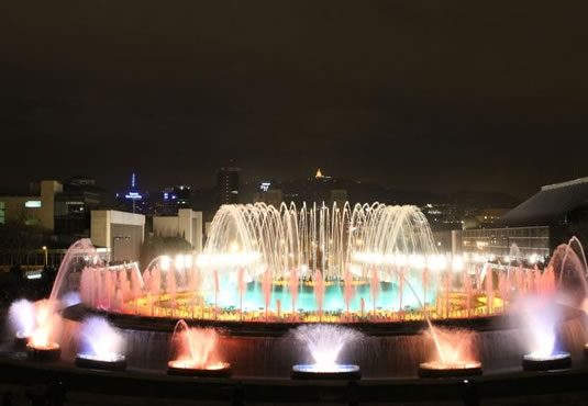 「魔法の泉」はバルセロナのスペイン広場に位置し、様々な色彩でライトアップされた噴水と音楽が融合したショーを繰り広げ、多くの観光客で賑わいました。