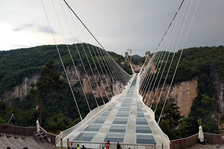 高さが300メートル、全長430メートルという長大なモノ。橋自体は驚くことはありませんが、コレが「全床面ガラス張り」なのですよ。