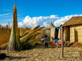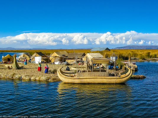 湖上には「トトラ」と呼ばれる葦を編んで浮かべた浮島がいたるところにあり、現在もウル族などの先住民が居住しています。