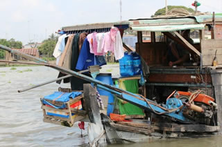 訪れたのはタイ北部の集落でしたが、現在、バンコク周辺でもこのような集落が残っているようです。(バンコク近郊「アンパワー地区」の水辺集落↓)