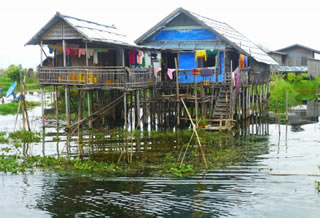これはハウス・ボートではなく、海面が上昇しても居住できる本格的なフローティング・ハウス。100軒近くの家屋がアイマ湖の岸壁に係留され停泊しています。