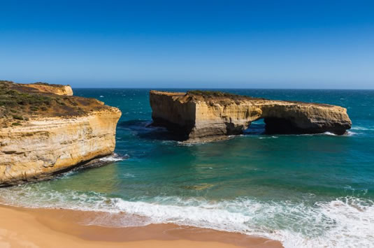 さて、種子島の『アーチ岩』は潮風の「風化」によって出来たものですが、海流に洗われてできた有名な「天然橋」がオーストラリアにある『ロンドンアーチ』です。