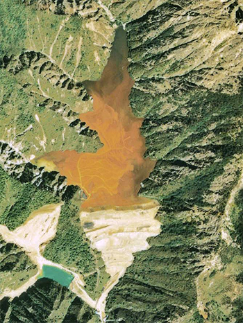 鉱滓ダムとは、鉱山の製錬工程で発生するスラグの固形分を堆積させる施設。