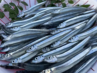 ニシン科で体調10センチほど小魚ですが、身体の半分が銀色、残り半分が半透明で、キラキラした身をショウガ酢味噌につけていただきました。