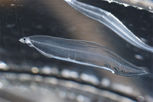 実はウナギに近いアナゴやカライワシ、ハモ、ウツボの幼生は一括して「レプトセファルス」と呼ばれ、すべて透明体なのです。