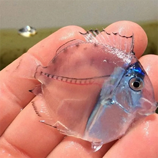 意外なのは、ウナギの幼生で、そのほとんどが透明なリボンのような姿をしています。