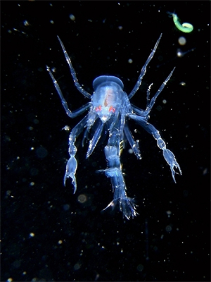 「氷の妖精」などと呼ばれるクリオネですが、元々は巻貝の仲間。成長すると貝殻が無くなり、内臓以外は透明な姿になります。