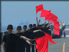 3月31日、第一回放映の実験01「音の速さを見てみよう」では、東京の臨海地域で海岸沿いに86人が1.7Kmの範囲に並び、音が聞こえたら順に旗を上げることで「音速を見る」ことに挑戦しました。