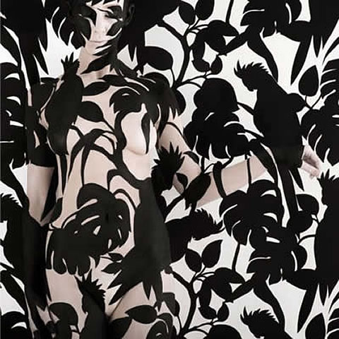 オーストラリアのデザイナーであるフローレンス・ブロードハーストの鮮やかな壁紙に合わせたペイントを人間の体に施して、幻惑的な作品に仕上げています。