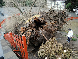 ⇒樹齢800年の鶴岡八幡宮のご神木が倒壊
