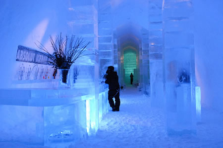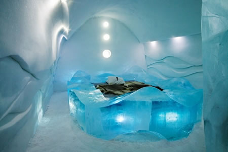 ここを流れるトネル川の水を利用して、アーティストがオブジェや装飾品を凍らせて作るホテルだそうです。