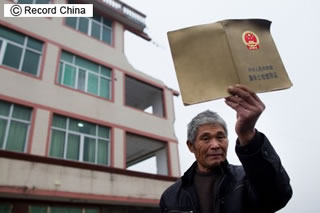 浙江省温嶺市にあるこの家の持ち主は、「800万円(日本円相当)で建てた家の立ち退きに350万円しか補償が出ない。これでは新しい家も建てられない。」として立ち退きを断固拒否。