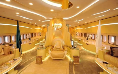 実はコレ、サウジアラビアの王様のプライベート・ジェットの客室内部。とても飛行機の中とは思えません。
