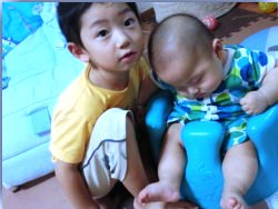 なんと長男様、次男様の頭に手を当てて(腕まくらのつもり)寝かしつけたらしいです。