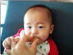 ぶどうをなめていて歯茎で噛みちぎったり、ふかし芋をなめさせていて歯茎で削りとったり、長男の時とは大違い(T_T)