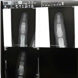 あちこちすりむいているほかに、中指がぷっくり腫れている・・・。