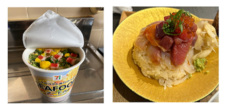 我が家の今日の昼食(100円そこそこのカップ麺)vs 娘&孫#4の昼食(豊洲市場で1億8000万で競り落とされた大間の本鮪。※「すしざんまい」が史上最高値5億1030万円で落札したのとは別)。
