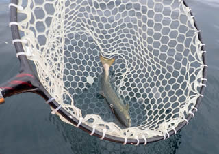 ほとんどのヒメマスは表面から5m以内にいて、カヤックを警戒していました。