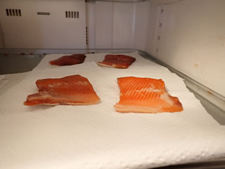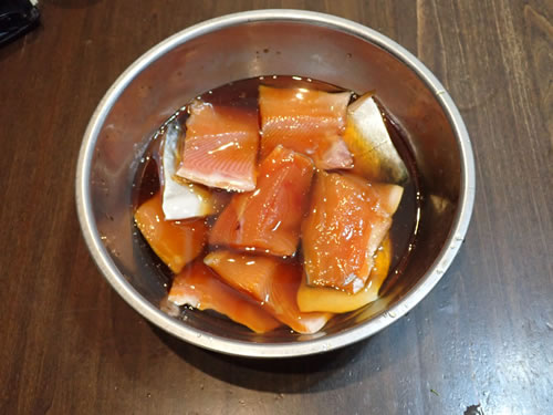 Making smoked trout. I made smoked using the char I caught in May. As expected, this fish tastes best smoked.