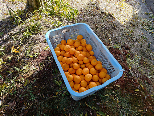 Harvesting yuzu. I harvested 300 yuzu, divided them into 10 pieces, and will provide them to the children's cafeteria on Saturday. They will be enjoyed in the bath on the winter solstice.