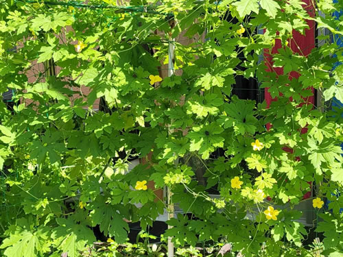 ツルが物干しまで絡まってきて洗濯干すのも大変って思っていたら、な!な!なんと実が隠れてなっていました🎵